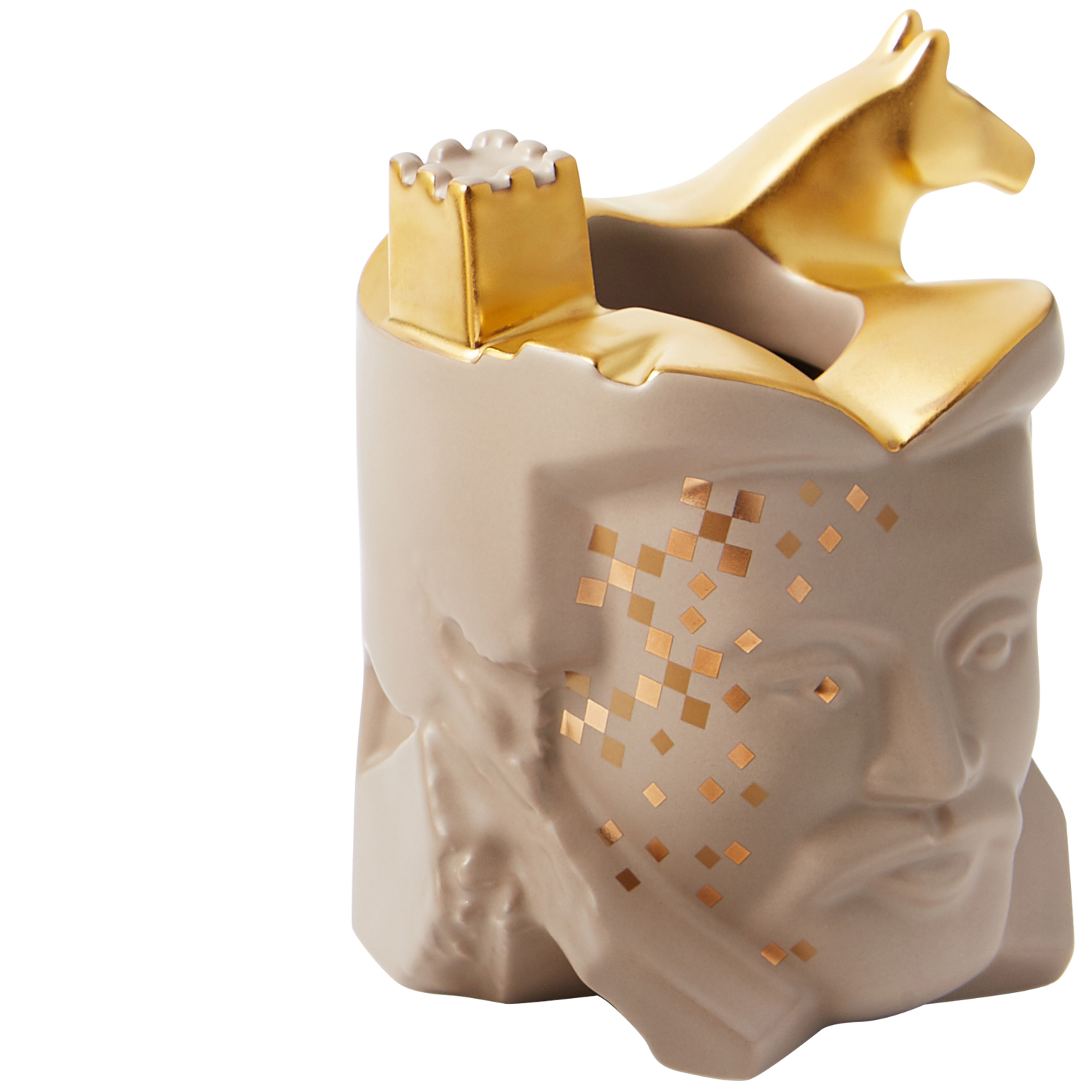 "A Dream of the Ancient Qin" captures the essence of the Qin Dynasty with a porcelain depiction of a terracotta warrior and a horse leaping over the Great Wall. Crafted with Lincentury's refined matte glaze and accented with genuine gold, this piece embodies the majestic spirit of ancient China in every detail.