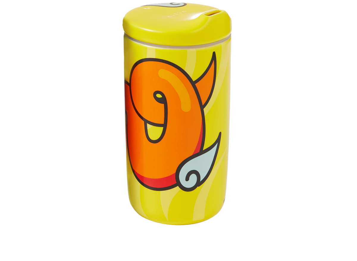 The omnipotent Dragon King roams the skies with dazzling grace. The boldly colorful graffiti-style letters on the side of this tumbler are a playful visual pun. They take the form of a dragon, while spelling out the Chinese word for dragon, pronounced “long.” They can also be read as the English word “long,” as in “long life.” The legendary Oriental dragon lives on eternally, even in contemporary times.
