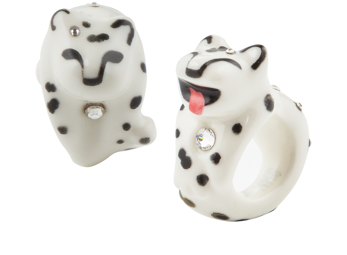 The "Embrace of the Leopard" porcelain ring, inspired by Sanyu’s (aka Chang Yu's) artistic depiction of the universe and leopard, seamlessly blends the vast cosmos with the graceful leopard, symbolizing the transience and opulence of life, while emphasizing fortune and auspiciousness through leopard spots adorned with rhinestones, adding luxury and elegance to the design.