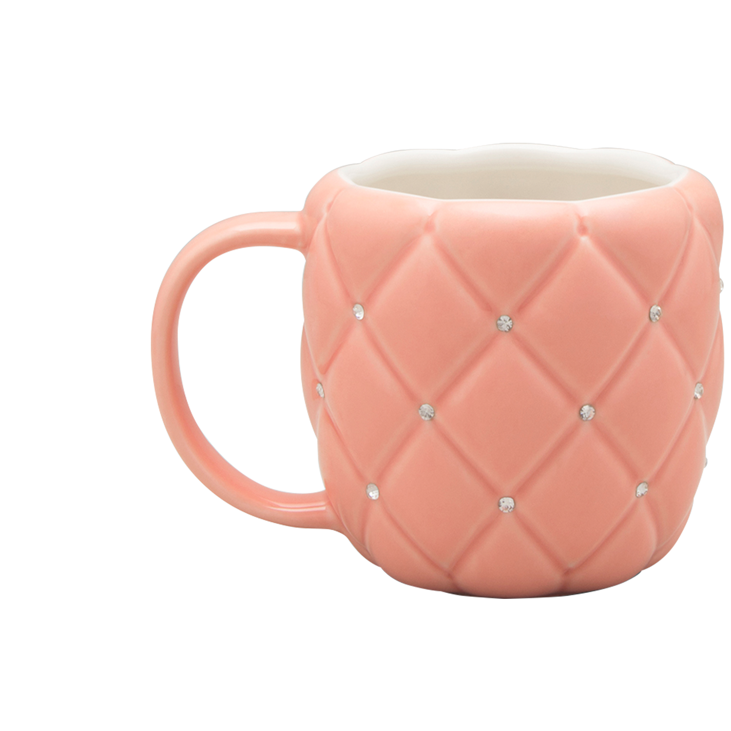 The "Discovery" series of mug pairs draws inspiration from Rococo-style diamond-patterned sofas, infusing classical elements with modern design. The exterior design showcases the diamond pattern in relief floral designs, featuring soft pastel and pink tones for an orderly and lively aesthetic. Crafted with a matte glaze finish, the mugs exhibit gentle elegance with a contemporary touch. Craftsmanship features include bicolor glaze, ensuring precise coverage without color mixing, and matte glaze, showcasing a demanding formulation for enhanced texture and appearance. The glaze feature highlights the unique silky texture and understated beauty of matte glaze, embodying an elegant and pleasing sensation.