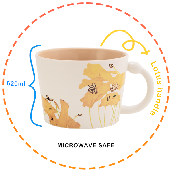 The "Lotus Splendor" porcelain mug, inspired by Chang Yu's exquisite portrayal of lotus flowers, skillfully captures their elegant stance in natural ponds and translates it into artistic patterns on the mug. The design ingeniously wraps the continuous lotus flower pattern around the mug, creating a miniature representation of a lotus pond that is endlessly charming. Additionally, the mug's handle, inspired by the bud of a lotus flower, lends a unique visual and tactile quality to the piece. Lincentury's matte glaze technology not only ensures a fine and smooth texture of the product but also achieves rich and saturated colors through high-temperature firing, addressing food safety concerns. This mug is not just a practical item for daily use but a perfect fusion of art and craftsmanship, adding a touch of Eastern elegance and auspicious beauty to your life.