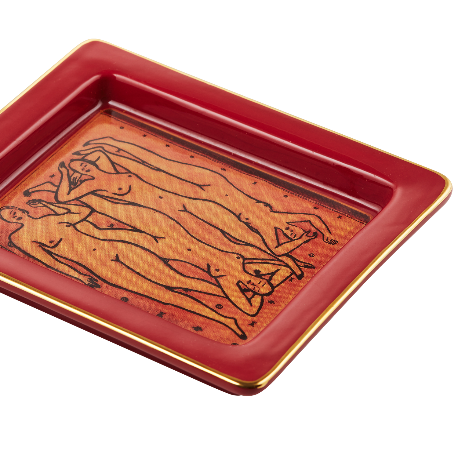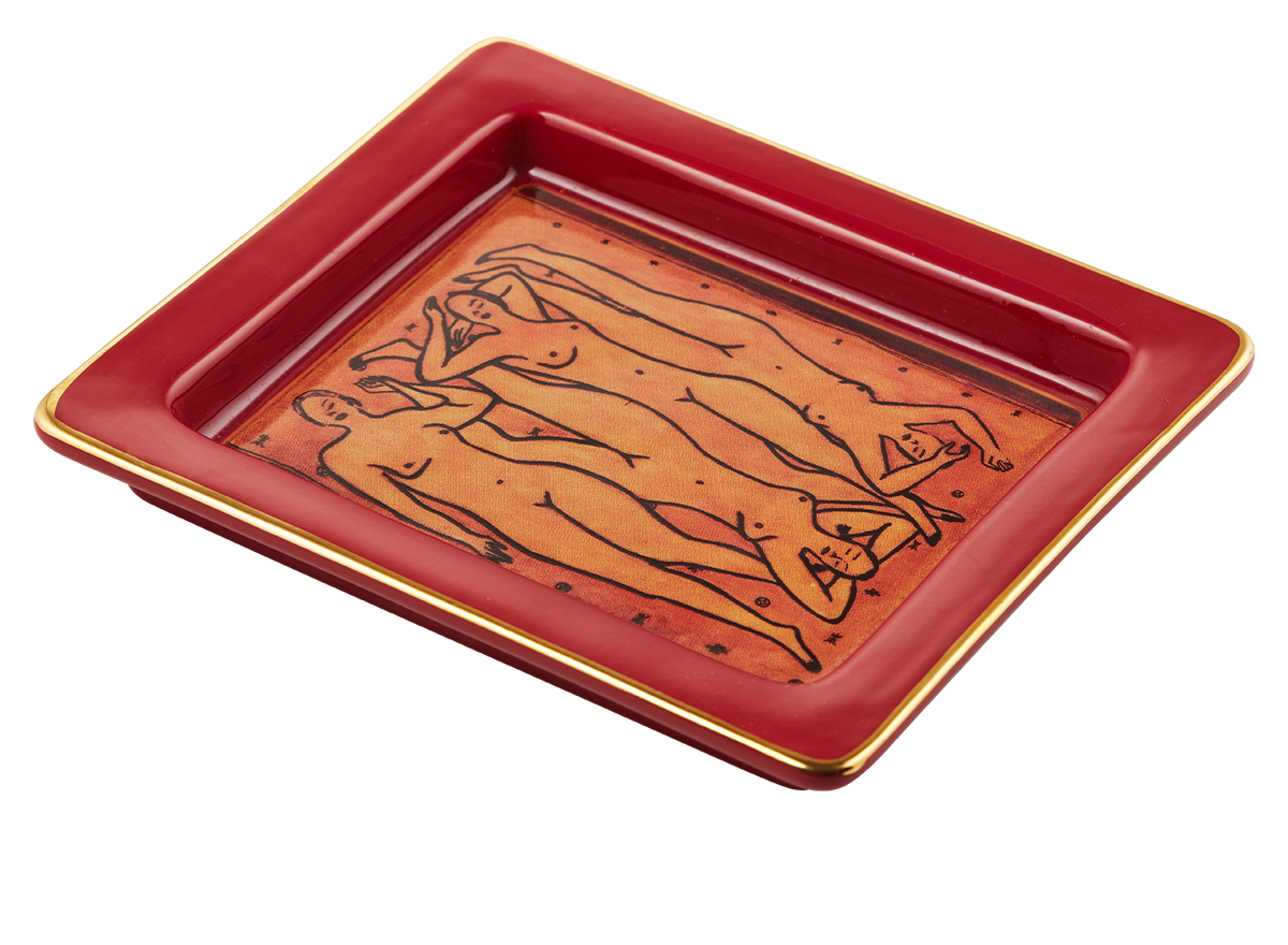 This "Lounging Lovelies" porcelain plate is inspired by the unique portrayal of nude female figures by the artist Chang Yu. The design ingeniously integrates Chang's profound observation of the nude form and his bold expression of the body's curves, particularly characterized by his clean, sharp brushwork reminiscent of calligraphy and his depiction of voluptuous, statuesque female forms. The shape and pattern of the plate are inspired by the exaggerated and colossal depiction of female buttocks and legs in Chang's paintings, creating a powerful visual impact and an artistic interpretation of the typical Parisian female figure. Additionally, Lincentury's advanced craftsmanship ensures the plate's delicacy and high quality, making it not only a practical piece of dinnerware but also an artistic representation of Chang Yu's style.