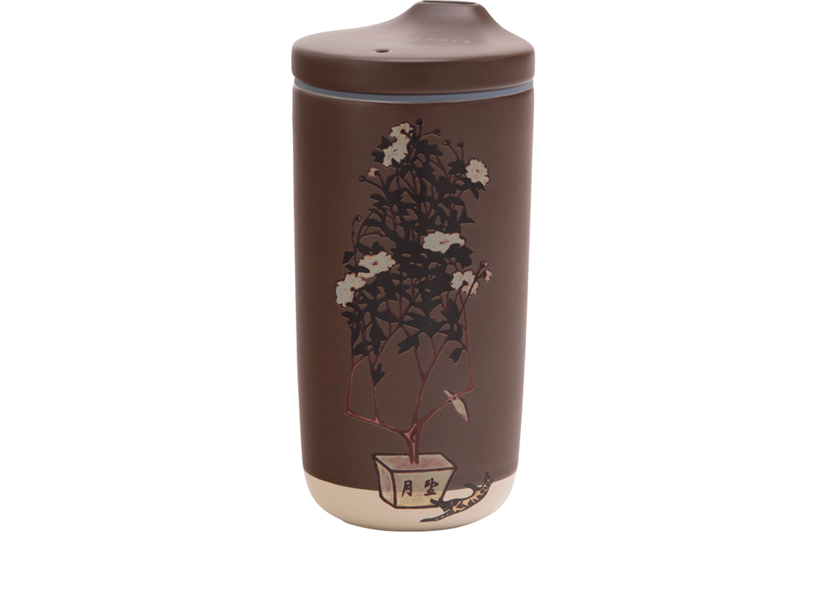 Our "Moon Gazing" tumbler cup, inspired by Chang Yu's artistic style and modern design elements, features a minimalist aesthetic with a neatly color-blocked background, accentuating the texture of the monochrome glaze. Simplifying the details of the butterfly from the original artwork, it focuses on the interactions between pure white flowers, cats, and birds, adding vivacity and liveliness. Rich in symbolism, the peony's grandeur, the fortune implied by the antler-like branches, and the dynamic between the cat and bird weave together into a lyrical ode to Chang Yu. Crafted with Lincentury's matte glaze technique, the cup offers a delicate and smooth texture, fired at 1250°C for saturated and vivid colors without heavy metal residues, ensuring drinking safety. Its double-layered design is lightweight and thermally insulated, perfectly ergonomic and easy to handle. This tumbler cup is not just a practical item for everyday use but a perfect fusion of art and craftsmanship, bringing a unique artistic experience to your daily routine.