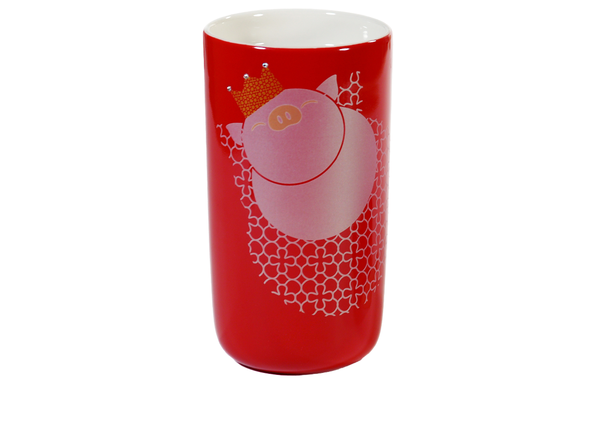 This cute pig is shaped like a gourd, which is a homonym for “good fortune” in Chinese. Plump and round, brimming with a sense of affluence and a look of satisfaction, it is both lively and likable. The sweet-scented osmanthus is known as the “fragrance of nine thousand miles” or the “golden pride of autumn.” A golden-colored osmanthus pattern decorates the crown and the base, signifying royalty, opulence and fabulous luck.