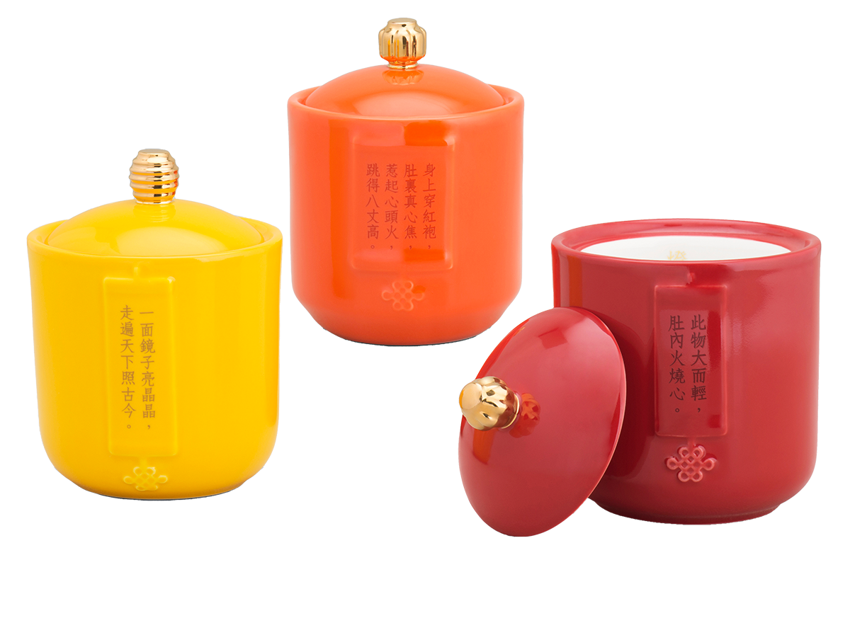 Lantern riddles are a unique linguistic art in Eastern culture. The riddles on the exterior of the teacup are represented in multi-layered reliefs. The answer to the riddle is hidden at the bottom inside the cup, revealed when the lid is lifted, making for a clever and amusing design. The lines of the cup body and the lantern decorations on the lid's knob complement each other. The three cups each have different designs, filled with auspicious colors and patterns, adding to the brilliance of the Lantern Festival.